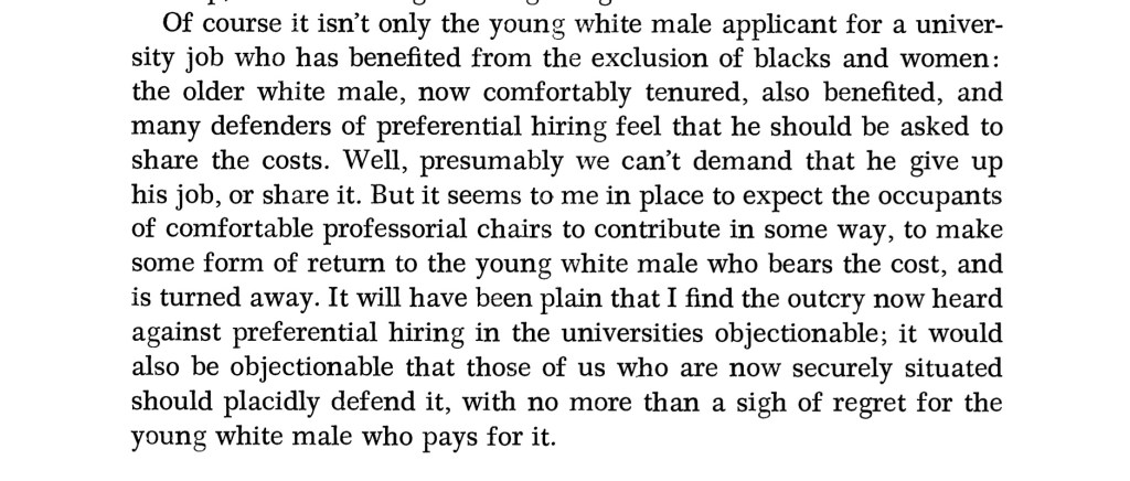 White American males find themselves in the rather unprecedented position of being discriminated against in their own country, a country they built from the ground up.
